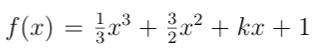 Dla jakich wartości parametru k funkcja f(x) = x3−x2+kx będzie rosnąca w całym zbiorze liczb rzeczywistych?