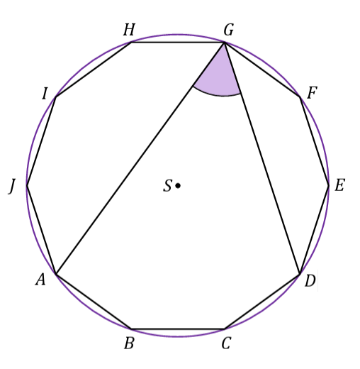 Na dziesięciokącie foremnym ABCDEFGHIJ opisano okrąg o środku w punkcie S (zobacz rysunek).