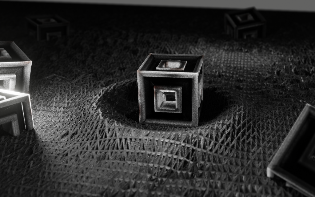 Nie planowałem takiego wpisu, ale po przygodzie z tego weekendu stwierdziłem, że jednak napiszę kilka słów. Przygotowałem grafikę zmodyfikowanego sześcianu, który ma być graficznym żeliwnym obiektem, elementem w pewnej strukturze. Zadowolony, że uzyskałem ciekawą konstrukcję pomyślałem sobie, że przetestuję moc obliczeniową mojego komputera i zobaczę jak wyjdzie grafika wykonana w rozdzielczości 16k.