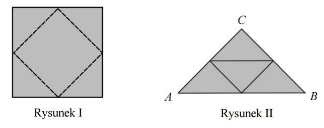 Z kwadratu odcięto trójkąty tak, że linie cięcia przeprowadzono przez środki boków tego kwadratu (rysunek I).