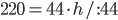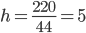 Znamy dwie wielkości z tego wzoru: P=220 2<\sup> i a=44 cm. Stąd policzymy h.