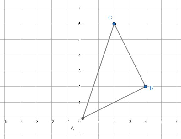 Pole trójkąta ABC o wierzchołkach A=(0, 0), B=(4, 2), C=(2, 6) jest równe