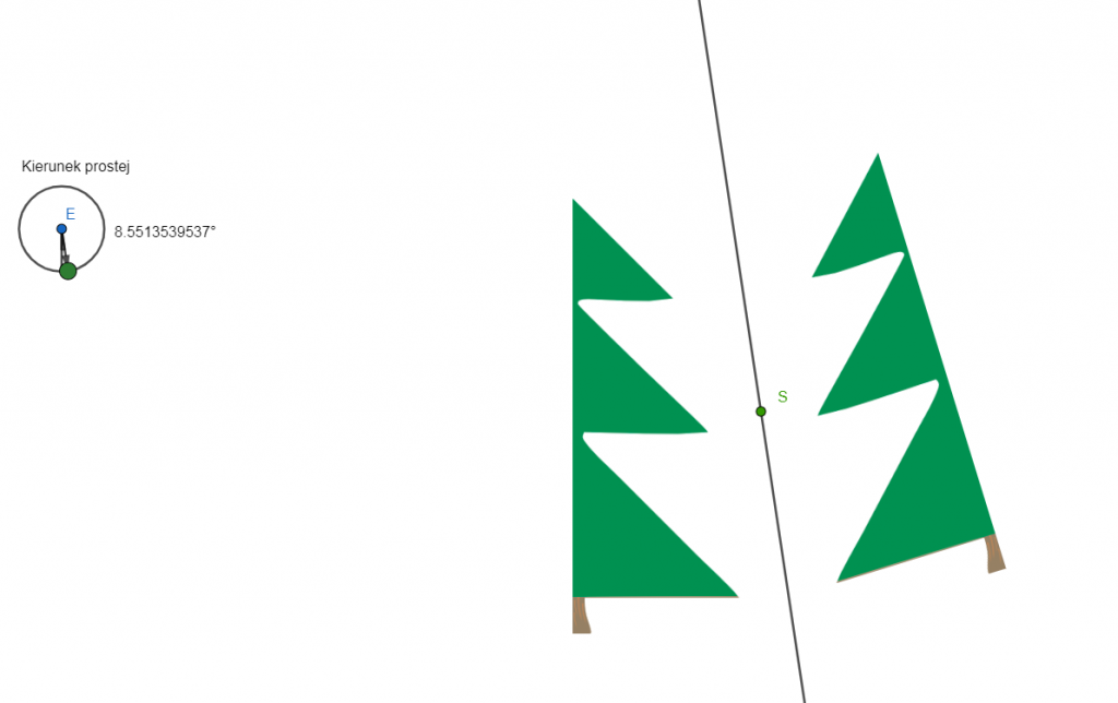 Zmień pozycję prostej poruszając punktem S, oraz zmień kierunek tej prostej z pomocą punktu na okręgu. Ustaw to tak, aby otrzymać całą choinkę.